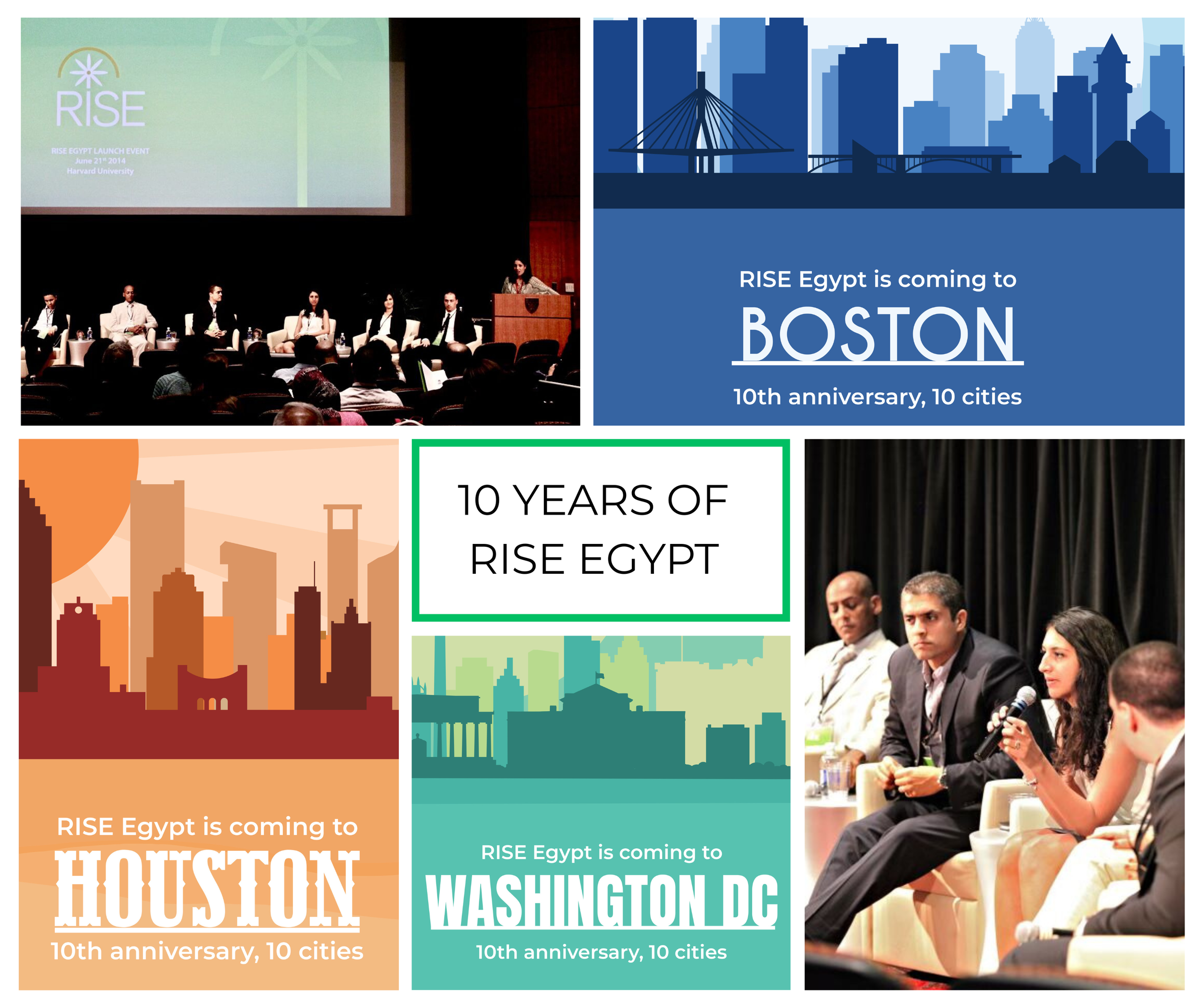 RISE Egypt marks 10 years. In June 2014, we launched with an event at Harvard University in Boston, MA. Prior to the launch event, we kicked off a 10-city diaspora tour to raise awareness and share the mission and vision of RISE.